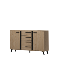 Kolekcja Gaya łączy w sobie minimalizm i nowoczesność. Bryły wykonane są z płyty w dekorze naturalnego orzecha rockford, który przełamany został czarnymi, matowymi elementami. Nóżki nie tylko dodają lekkości poszczególnym elementom zestawu Gaya, ale pełnią też funkcję praktyczną, ułatwiając utrzymanie czystości pod meblem. Geometryczne uchwyty w połączeniu z kontrastowym zestawieniem czerni i jasnego orzecha nadadzą wnętrzu popularny i mile widziany w naszych mieszkaniach nowoczesny charakter, a modułowość zestawu pozwoli intuicyjnie tworzyć aranżacje dopasowane do potrzeb każdego z domowników.